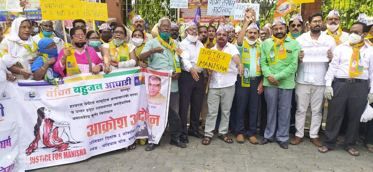 हाथरस प्रकरणातील दोषींना फाशी देण्यात यावी,वंचित बहुजन आघाडीच्या वतीने,सविधान चौकात आंदोलन करण्यात आले.