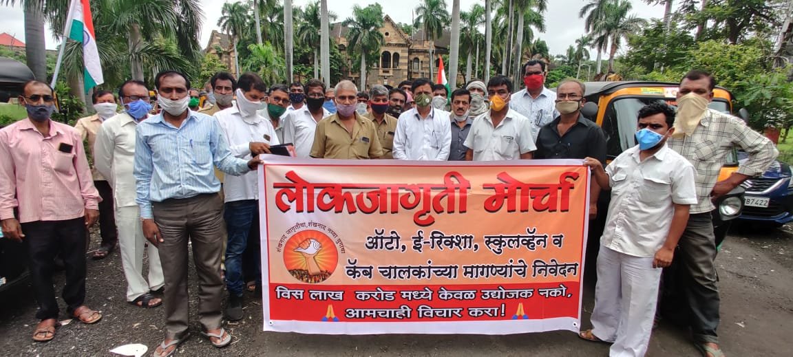 सद्यपरिस्थितीत कोरोनाच्या प्रादुर्भावामुळे सर्व ऑटोचालक, स्कूल व्हॅन चालक व कॅबचालक यांचा रोजगार पूर्णपणे बंद आहे त्यामुळे हे सर्व ऑटो, कॅब व व्हॅन चालक अतिशय भीषण आर्थिक परिस्थितीला सामोरे जात आहेत या पार्श्वभूमीवर लोकजागृती मोर्चातर्फे मा. विभागीय आयुक्त श्री अनूप कुमार यांना मंगळवार दिनांक 11 ऑगस्ट रोजी सकाळी 12 वाजता मागण्यांचे निवेदन लोकजागृती मोर्चाचे अध्यक्ष अँड. रमण सेनाड यांच्या नेतृत्वात देण्यात आले,यासंदर्भात लोकजागृती मोर्चाने महामहिम राज्यपाल माननीय मुख्यमंत्री माननीय उपमुख्यमंत्री केंद्रीय परिवहन मंत्री नितींजी गडकरी माननीय खासदार शरद पवार साहेब यांनादेखील मेल द्वारे निवेदन दिलेले आहे,