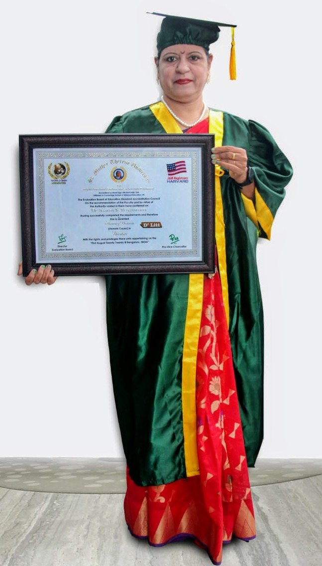 नागपूर.ता 21ऑगष्ट,आदर्श शिक्षिका डॉ. शारदा कृष्णकांत रोशनखेडे यांना राज्य पुरस्कार प्राप्त डि.लीट (डॉक्टरेट ऑफ लिटरेचर),नुकतीच प्रधान.