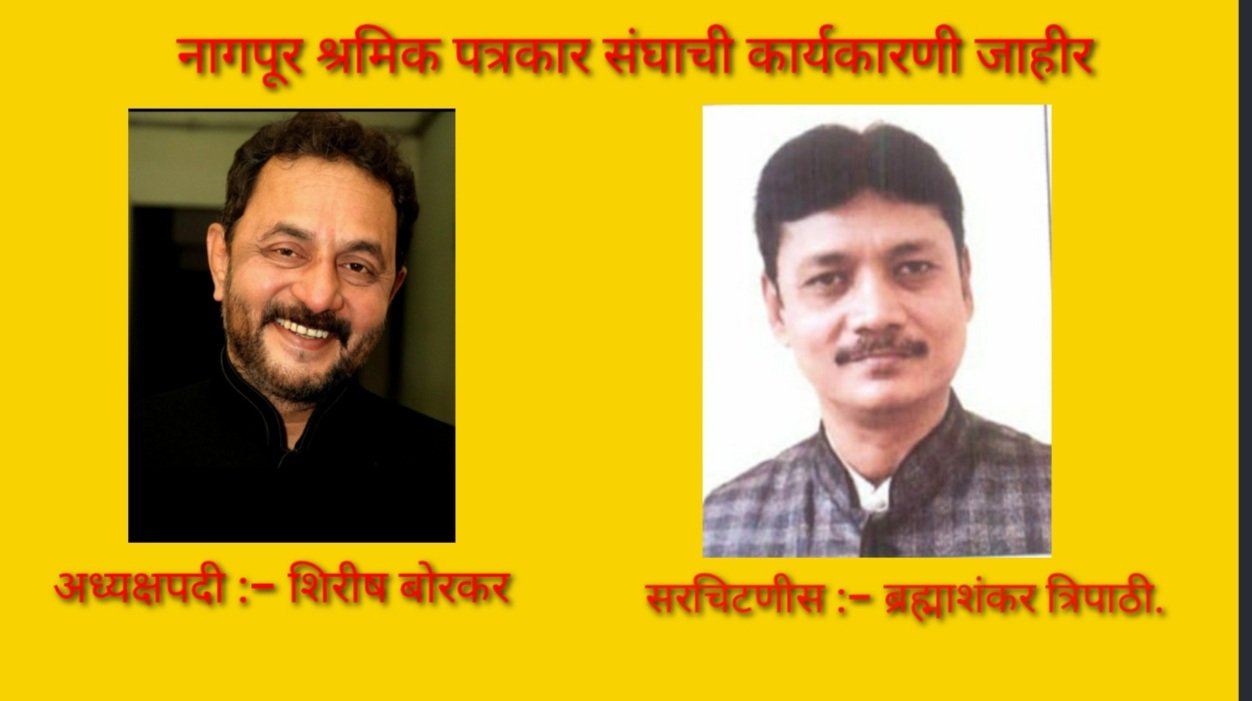 नागपूर श्रमिक पत्रकार संघाची नवीन कार्यकारणी जाहीर :- अध्यक्षपदी शिरीष बोरकर सरचिटणीस ब्रह्माशंकर त्रिपाठी
