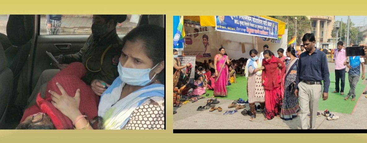 संविधान चौक नागपूर बेमुदत धरना आंदोलन प्रकल्पग्रस्त शेतकरी आंदोलनकरी महिला पडल्यात आजारी