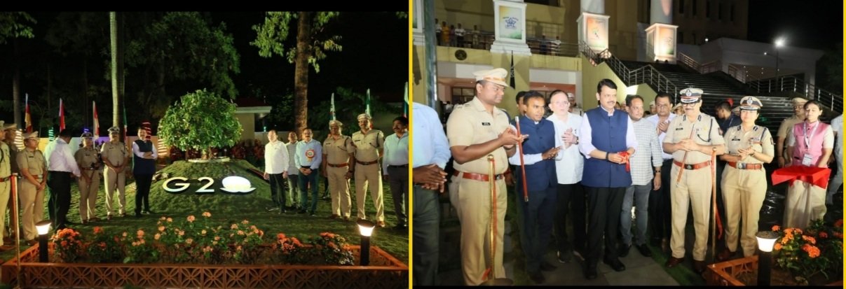 नागपूर, दि.19 मार्च 2023 :- उपराजधानीत 20 ते 21 मार्च दरम्यान सी-20 परिषदेचे आयोजन करण्यात आले आहे. त्यानिमित्त सिव्हिल लाइन्स येथील पोलीस भवन येथे तयार करण्यात आलेल्या जी-20 अंतर्गत सी-20 वाटिकेचे उदघाटन उपमुख्यमंत्री देवेंद्र फडणवीस यांच्या हस्ते झाले. यावेळी आमदार कृष्णा खोपडे, प्रवीण दटके, पोलीस आयुत अमितेशकुमार, नागपूर ग्रामीणचे पोलीस अधीक्षक विशाल आनंद व वरिष्ठ पोलीस अधिकारी उपस्थित होते. पोलीसांनी पर्यावरणरक्षणाच्या दृष्टीने उचललेले पाऊल प्रसंशनिय असल्याचे उपमुख्यमंत्री यावेळी म्हणाले.(दि.20 मार्च 2023)