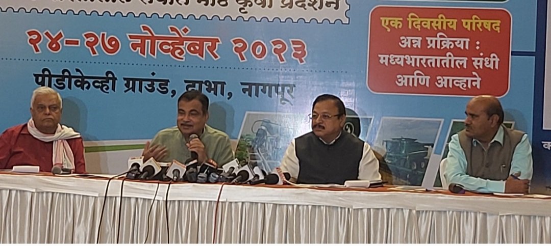 नागपुर दि 17 ऑक्टोंबर 2023:- मध्य भारत की सबसे बड़ी कृषि प्रदर्शनी अॅग्रोव्हिजन विदर्भ के कृषि क्षेत्र में परिवर्तन का महत्वपूर्ण माध्यम बन गई है । इस वर्ष २४ से २७ नवंबर २०२३ के बीच एग्रोव्हिजन पीडीकेवी मैदान, दाभा में आयोजित होने जा रहा है। यह जानकारी पत्र परिषद में केंद्रीय मंत्री नितिन गडकरी ने दी। किसानों को शिक्षित व प्रोत्साहित करती एग्रोव्हिजन की कार्यशालाएं I विगत १४ सालों से एग्रोव्हिजन में किसानों के लिये विनामुल्य कार्यशालाओं का आयोजन हो रहा है। एग्रोव्हिजन का मुख्य आकर्षण बनी इन कार्यशालाओं में उत्पादन तकनीक, खेती करने की नई पद्धती, पुरक व्यवसाय, बाजार सुविधा, पशुधन व्यवस्थापन, आधुनिक तकनीकी तथा मुलभूत सुविधाओं पर विशेष लक्ष केंद्रित किया जाएगा। खेती करना आसान हो तथा किसानों की आय बढ़ाने की उद्देश से एग्रोविजन में कार्यशालाओं का आयोजन किया जाता है। एग्रोव्हिजन सलाहकार समितीद्वारा सुझाए हुए ३० से अधिक विषयों पर इ वर्ष कार्यशालाओं का आयोजन किया जाएगा। देशभर के कृषि विशेषज्ञों । द्वारा इन कार्यशालाओं में मार्गदर्शन दिया जाएगा। सफल किसानों की गाथाओं से किसानों को प्रेरणा भी मिलेगी। इस में से कुछ कार्यशालाए जादा वक्त की भी होगी।