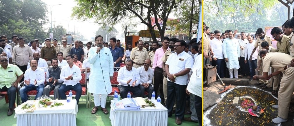 महाराष्ट्र ऑटोरिक्षा चालक मालक संघटनेच्या मुख्य बस स्थानक समोरील ऑटो स्टॅण्ड टिनाच्या शेडचे भूमिपूजन,पालकमंत्र